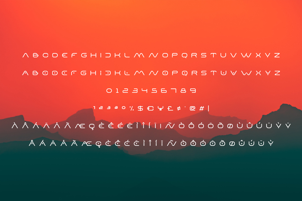 Eavm is an All-Caps Font with Sci-fi Feel. suitable for events, logotypes, Sci-fi stuff, modern & futuristic vibe, social media, products, and so on. contains standard English letters, numbers, punctuation, ligature, and several accents that support multilingualism.